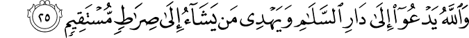 ၀၁၀ း ၂၅။ စင္စစ္ေသာ္ကား အလႅာဟ္အသွ်င္ျမတ္သည္ (လူခပ္သိမ္းတို႔အား) ၿငိမ္းခ်မ္းေရး ဘံုဗိမာန္သို႔ ဖိတ္ေခၚေတာ္မူေလသည္။ ၎ျပင္ထိုအသွ်င္ျမတ္သည္ မိမိအလိုရွိေတာ္မူေသာသူအား ေျဖာင့္မတ္ မွန္ကန္ေသာ တရားလမ္းစဥ္သို႔ပို႔ေဆာင္ေတာ္မူ၏။